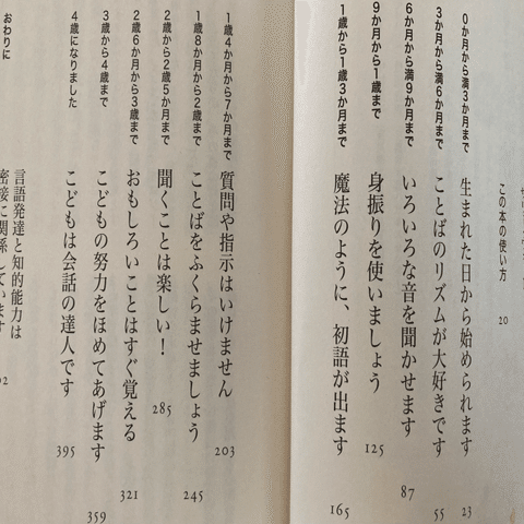「語りかけ育児」の本は分厚いですが、「今」の月齢に必要な内容は15ページほど。むずかしい言葉もなく読みやすいです。